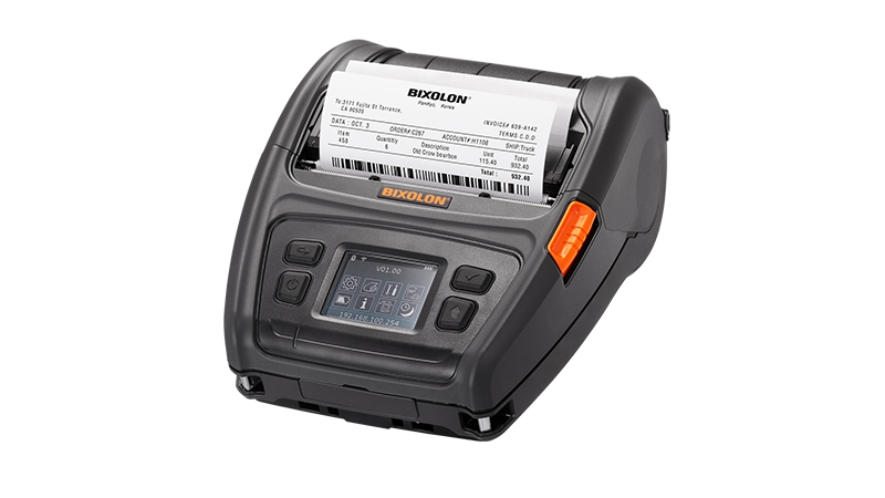 Мобильный принтер этикеток BIXOLON XM7-40 печатает этикетки шириной 4 дюйма (101,6 мм), способен работать эффективно и бесперебойно в промышленных условиях.