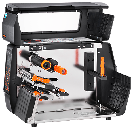 Принтер этикеток XT3-40 вмещает ленту длиной до 450 м, а боковая загрузка материала упрощает эксплуатацию.