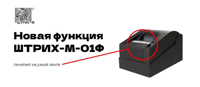 Добавлена функция печати на узкой ленте шириной 57 мм. С этого момента касса ШТРИХ-М-01Ф способна печатать на всех распространенных типах ленты 80 и 57 мм. Преимущества новой возможности в том, что лента шириной 57 мм имеет меньшую стоимость, а значит получится значительно сэкономить на расходных материалах. К тому же эксплуатация ККМ становится более простой и комфортной.