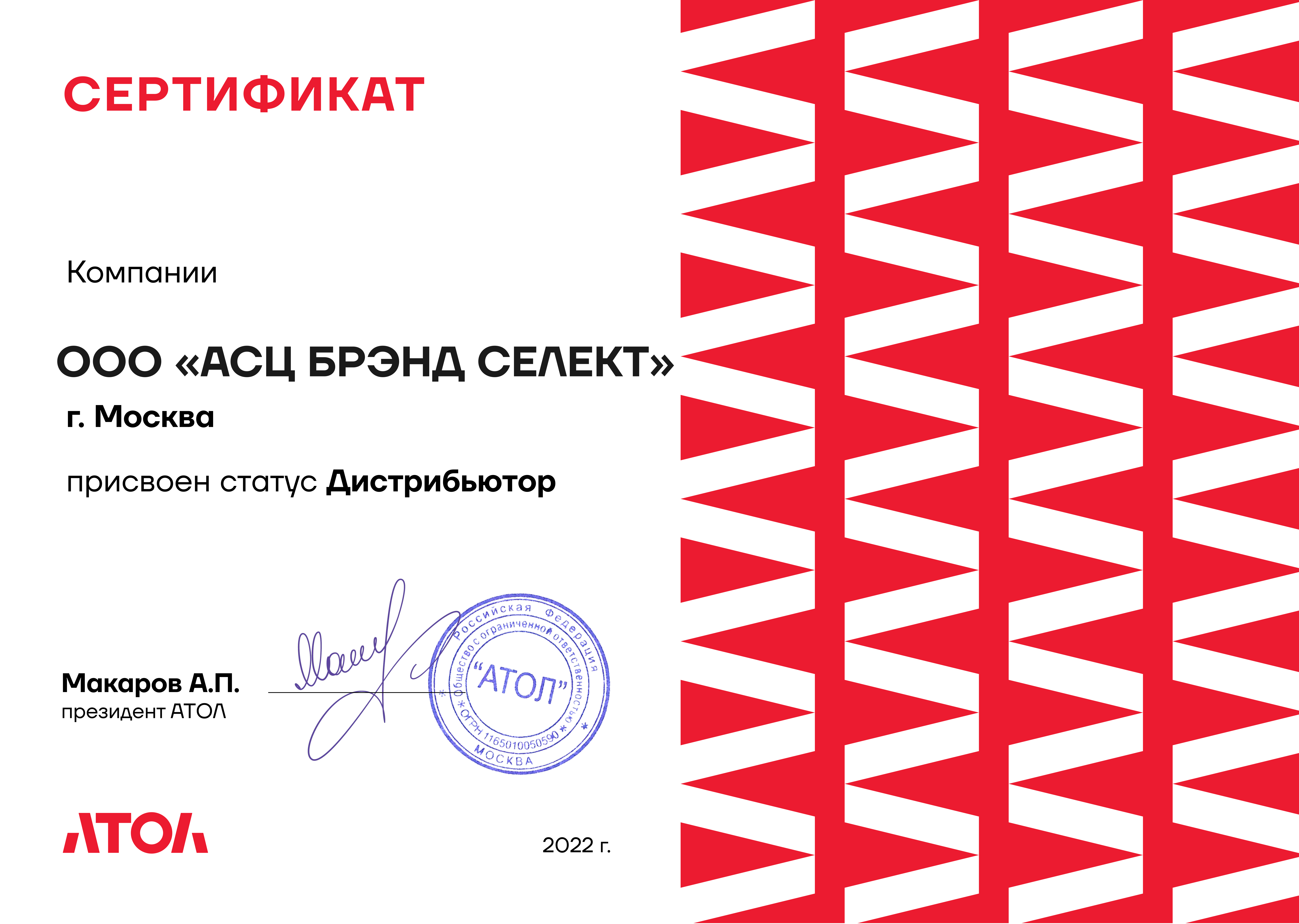 Дистрибьютор АТОЛ компании Брэнд Селект  Дистрибьютор АТОЛ компании Брэнд Селект  Дистрибьютор АТОЛ компании Брэнд Селект